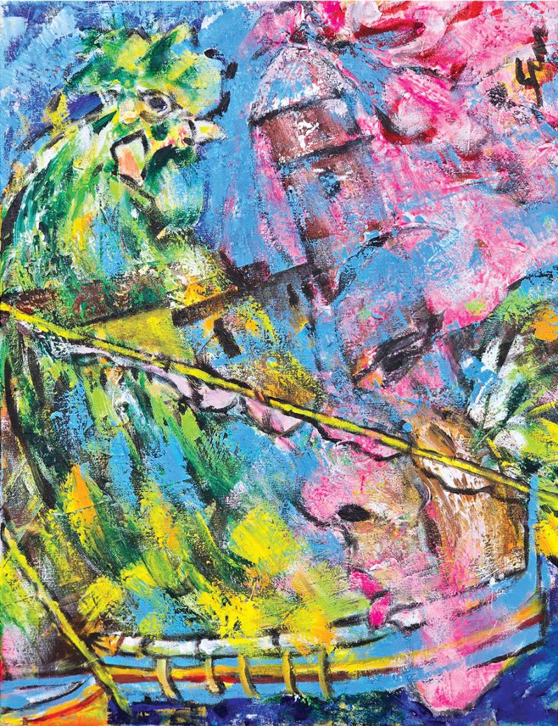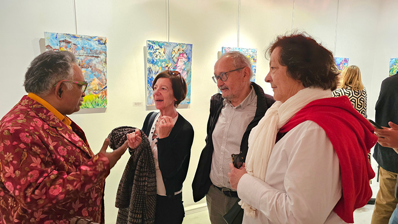 His fascinating paintings populated by multiple presences with abundant richness, is a feast for the eye and a dialogue with the soul of the viewer. If color has no meaning for the intelligence, it has all the power over sensitivity and the Artist does not deprive himself of it!