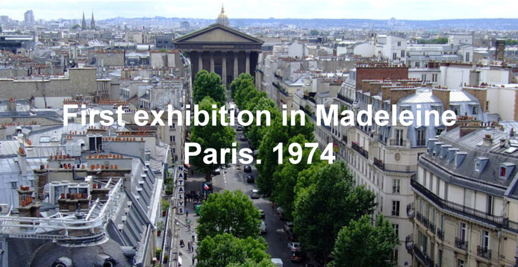 My first solo exhibition: Within a year of my arrival in Paris, in November 1974, I could have a solo exhibition in the heart of Paris, in the Madeline Opera area. I can’t express the thrill this gave me at that time. It happened with the support of the famous French artists whom I knew from my workplace.. Being a sweeper at a lithography printshop, I used to help them while they made their lithographs. They encouraged me in my pursuit of art. My most gratifying experience was that they treated me like an artist too.